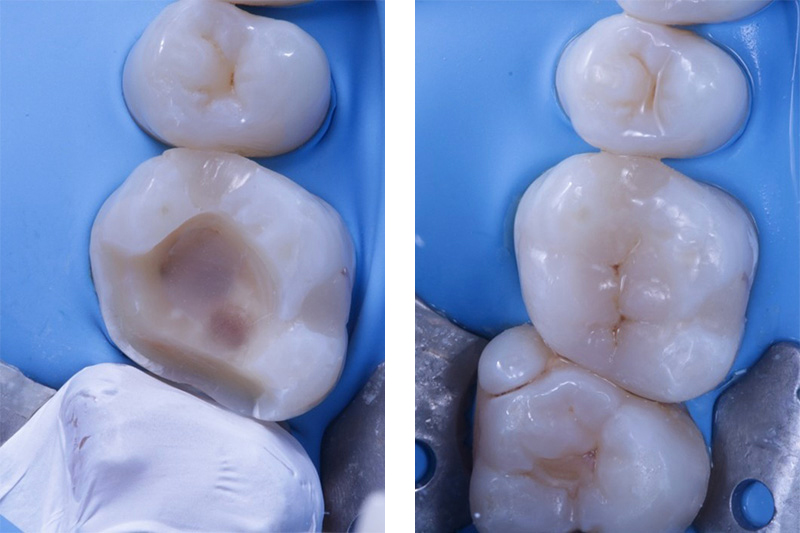 In questi casi, dopo aver rilevato un’impronta digitale 3D, la parte mancante dell’elemento dentario viene realizzata in laboratorio con tecniche digitali cad-cam, rifinita a mano per garantire assoluta precisione ed estetica e solo successivamente cementata in bocca. Tutto ciò permette di raggiungere standard di estetica e di resistenza del restauro eccellenti.